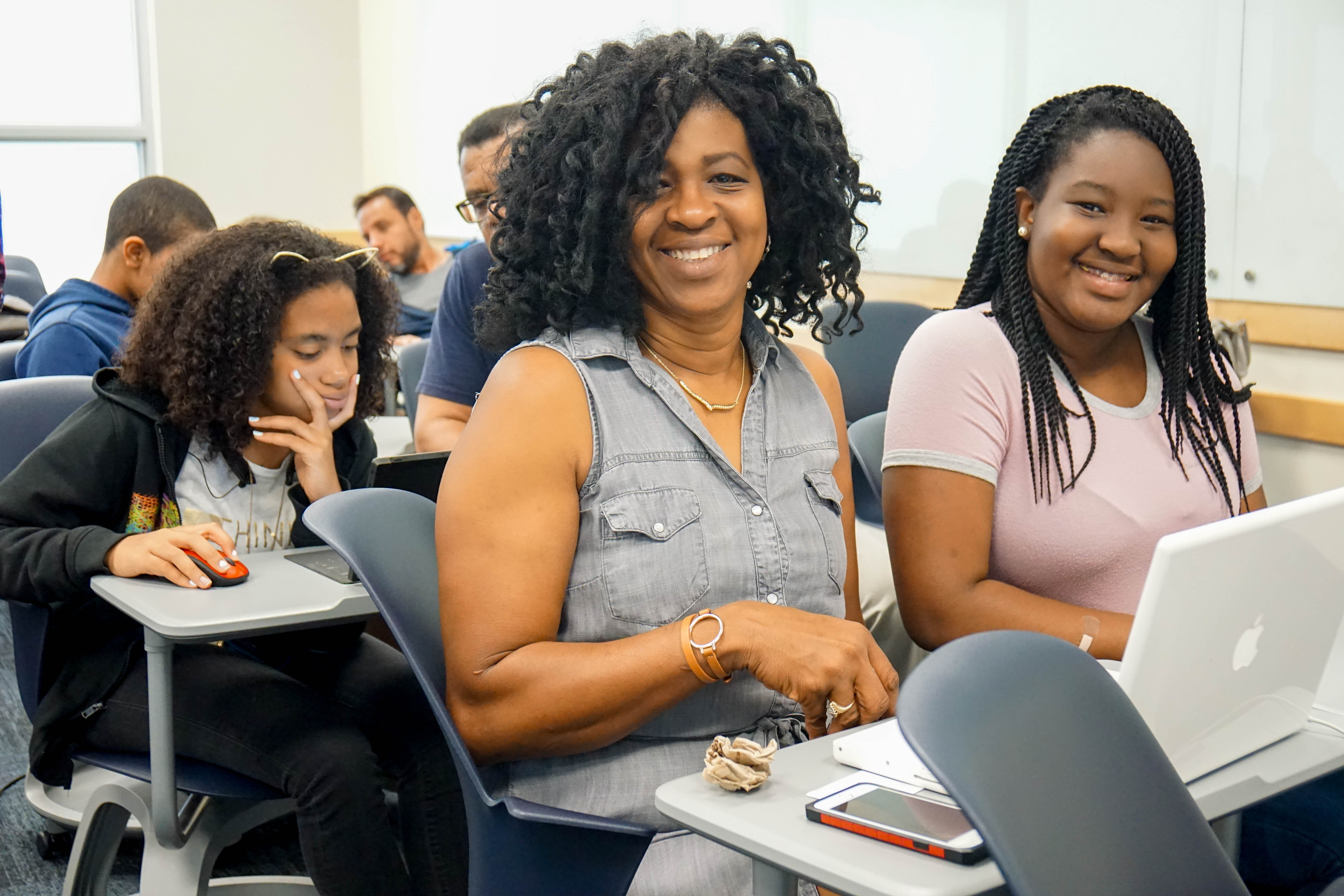 Photo of participants at Bring your parent to code day.