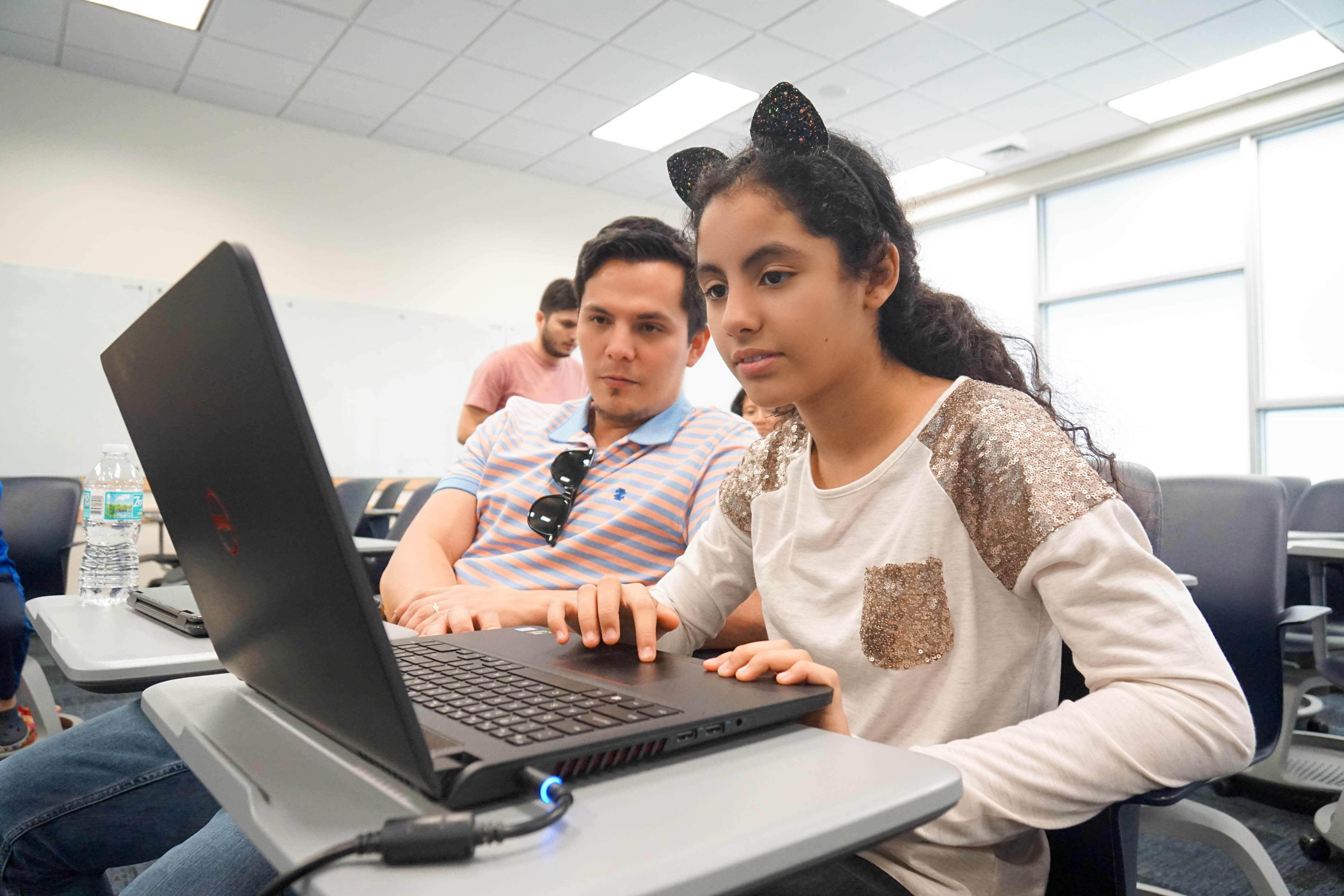 • 10 of 15 FIU Coding Club girls brought their fathers to the event and coded with them a replica of Galaga, a great arcade game from the 1980s. Research shows that when fathers promote the enjoyment of STEM subjects, integrate math into everyday life, and provide positive and challenging academic experiences to their daughters, it can lead girls to higher levels of STEM course-taking and career choices.