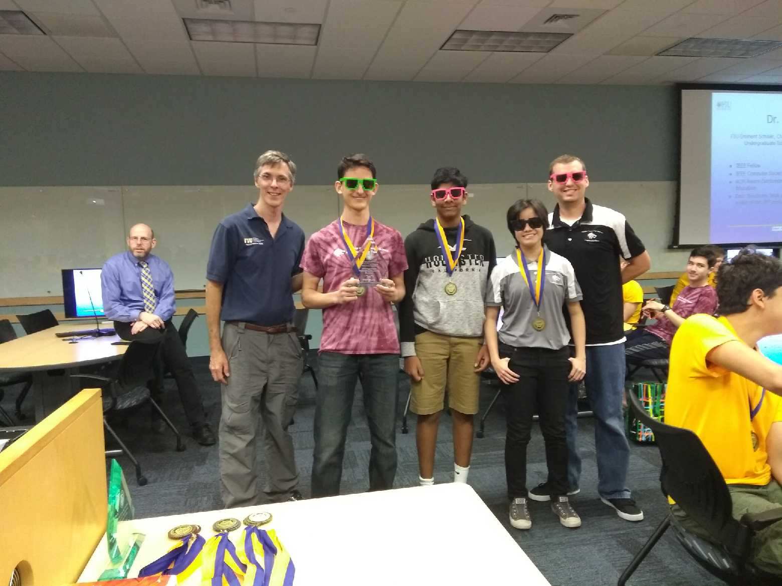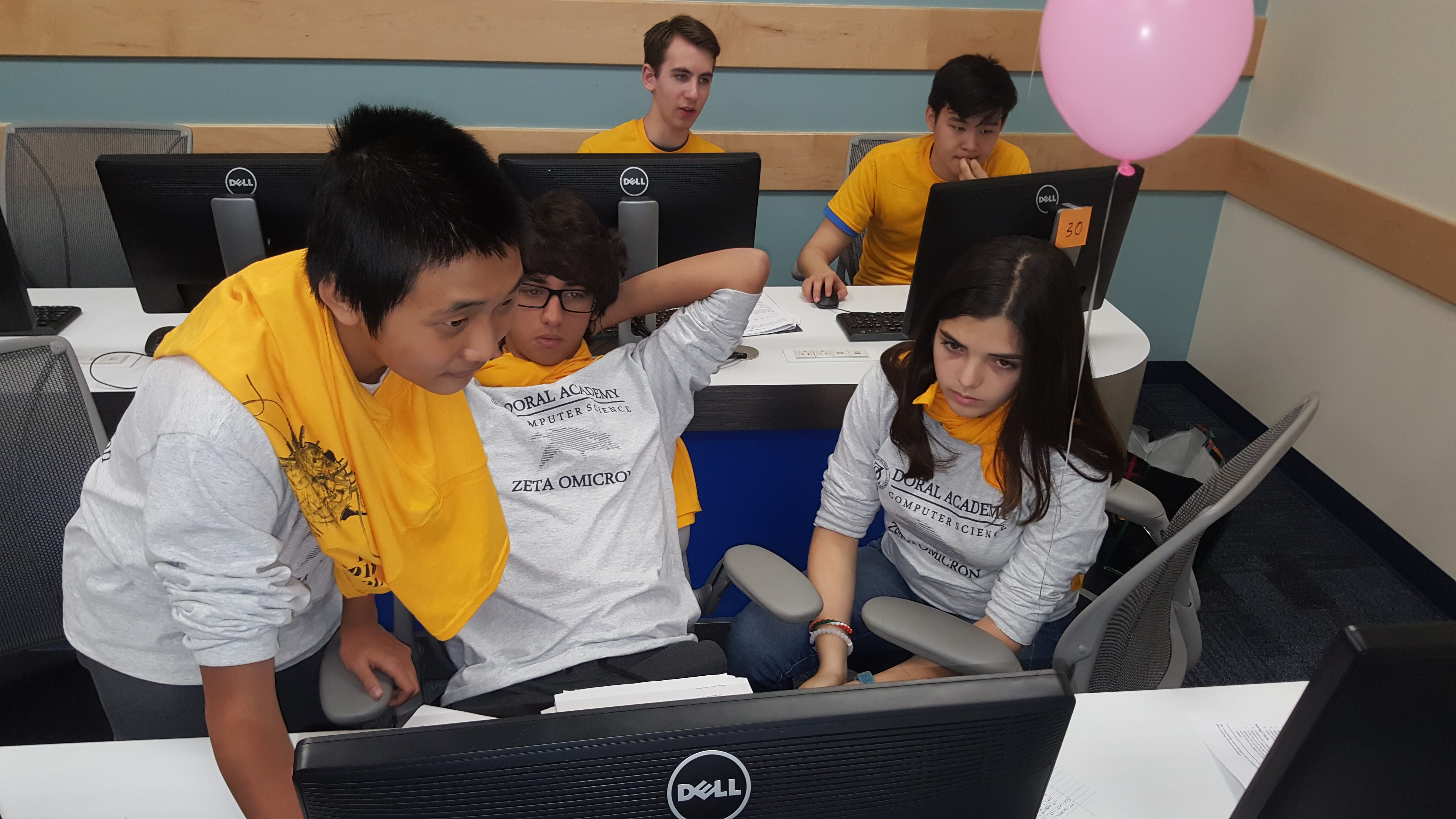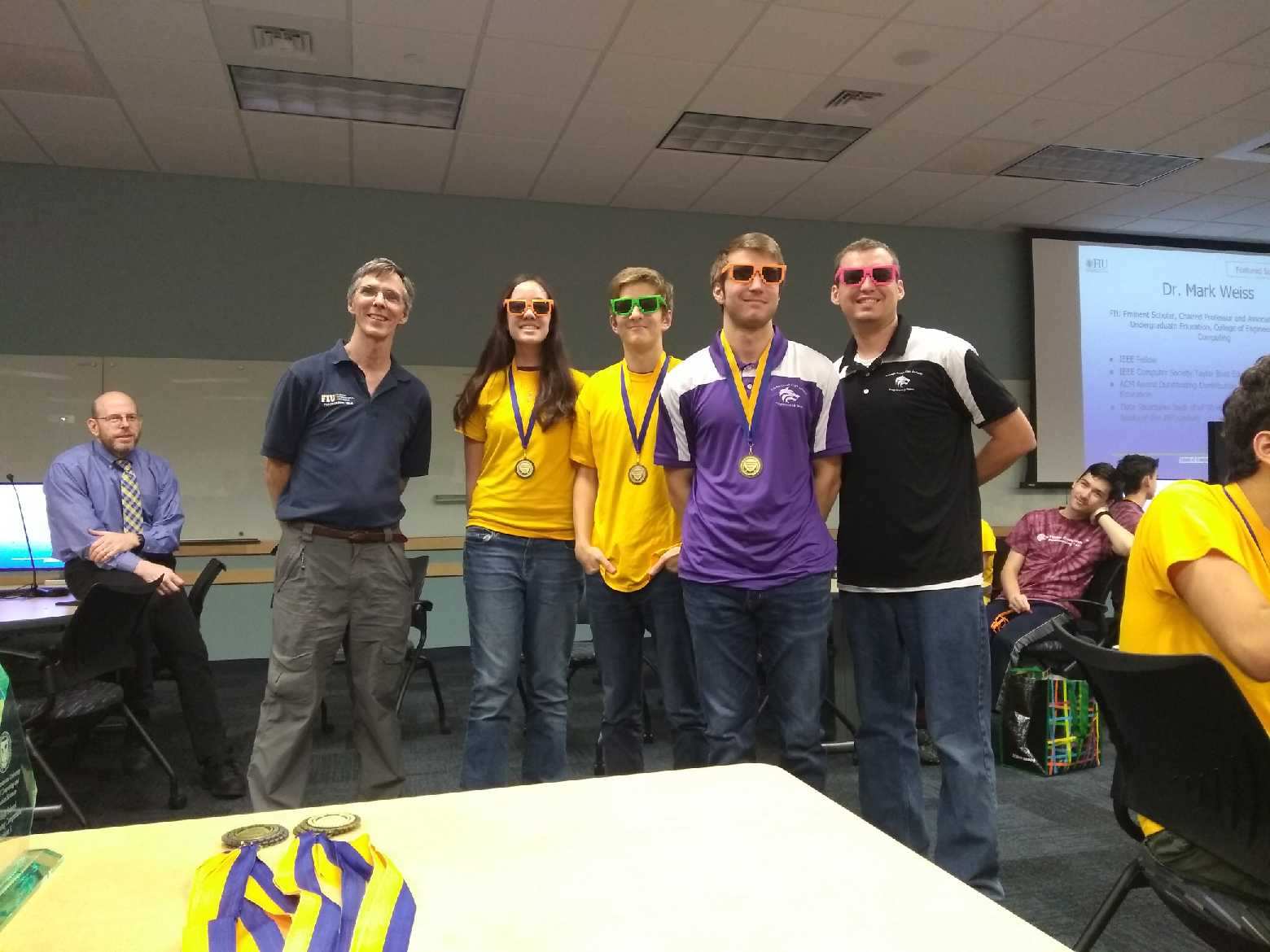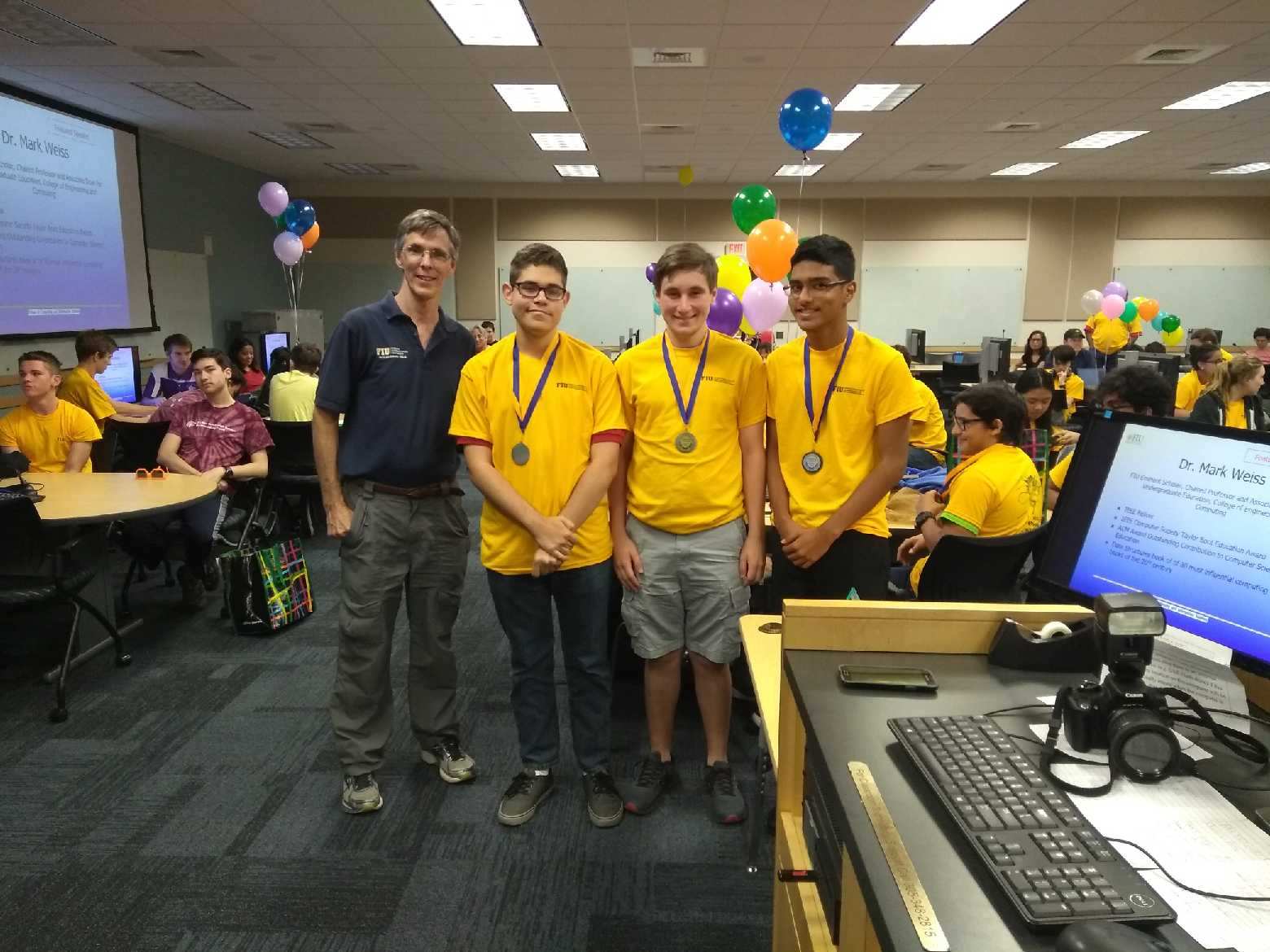 It’s really amazing that Cypress Bay High School’s team was able to solve 10 difficult problems in only 4 hours. And Doral Academy solved 9 problems. The problems required the kinds of algorithms taught in Data Structures here at FIU (weighted shortest path, spanning trees, dynamic programming).