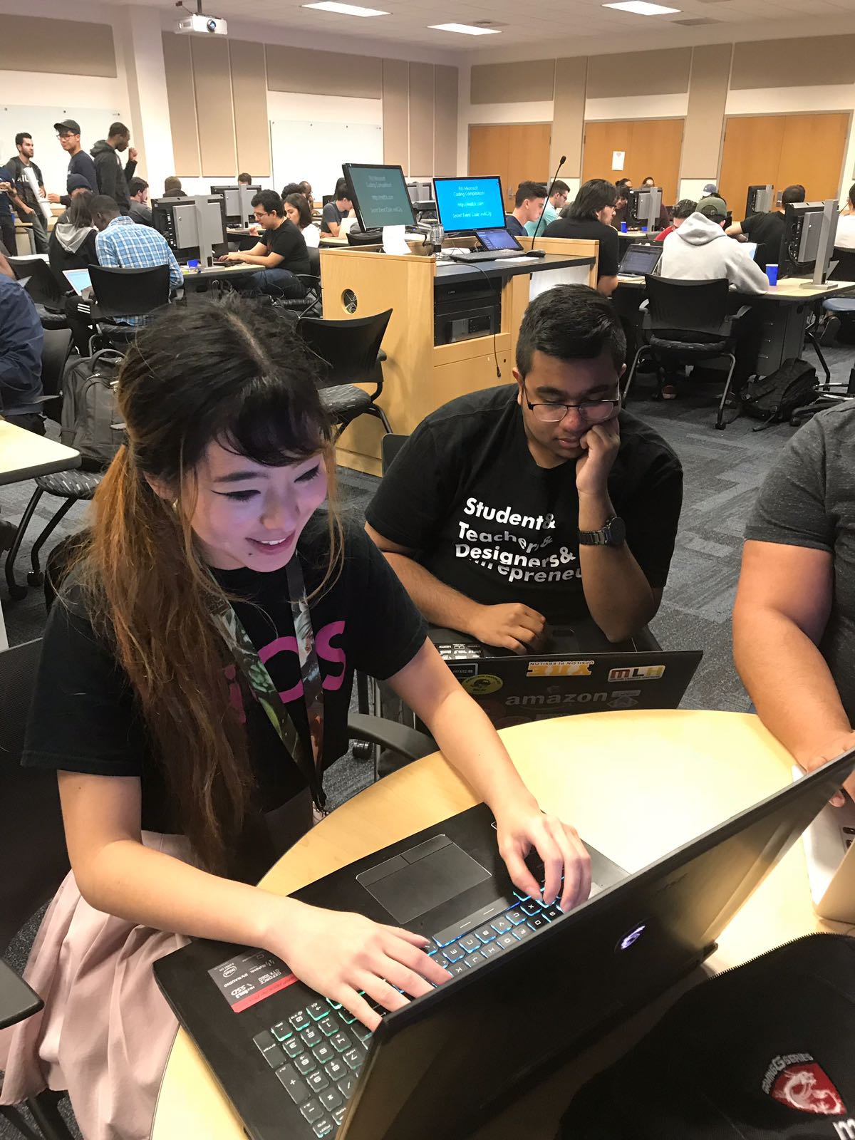 MSFT3C brought in over 50+ students from all levels at FIU, students currently taking Programming I , as well as student who are soon to graduate. Events like this have helped students land Full time opportunities at Microsoft and have given students a better grasp at problem solving skills. The types of questions that where given at this event are typical interview questions that include high level problem solving skills and a good grasp on data structures. Microsoft recruiters also looked over the students resume’s and gave feedback to help students land internship opportunities at Microsoft.