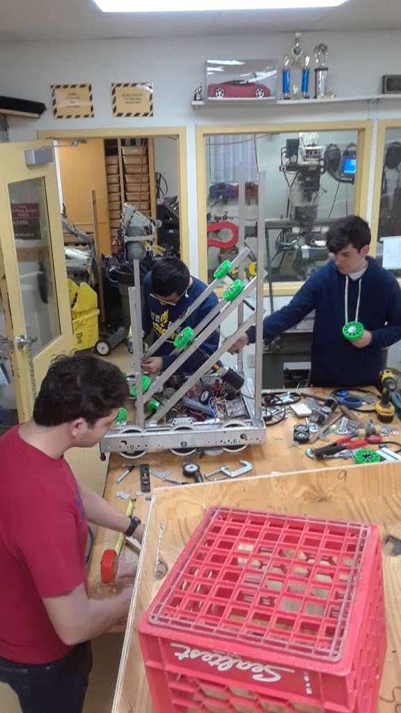 FIU SCIS and the Sculptures Lab, under the supervision of Mario Eraso and Robert Chambers, partnered to provide a site on the FIU campus to high school students who during 6 weeks (January 6 – February 17) built and tested a robot in preparation for the FIRST Robotics Competition (FRC). The students are juniors and seniors in the FIU AAA Program and the Miami Dade College SAS Program, both of which are full-time, dual-enrollment programs.